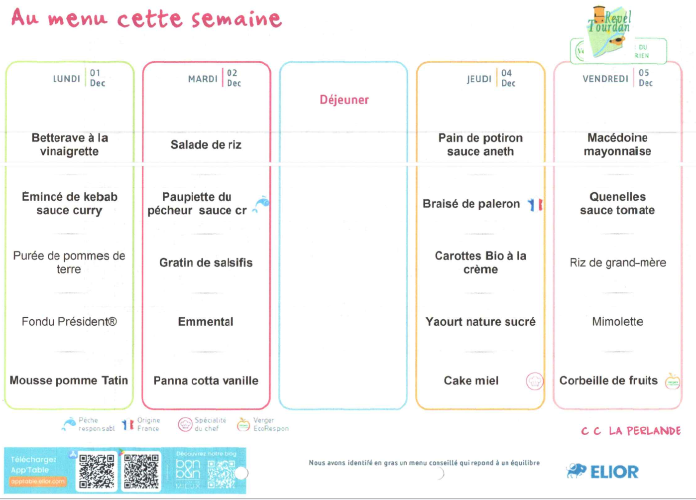 Menus du 1er au 5 décembre 2025