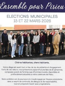 La liste Ensemble pour Pisieu a été élue le 15 Mars 2026 avec 77,19% des voix.